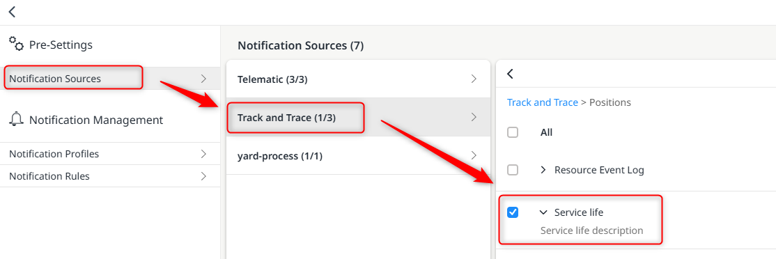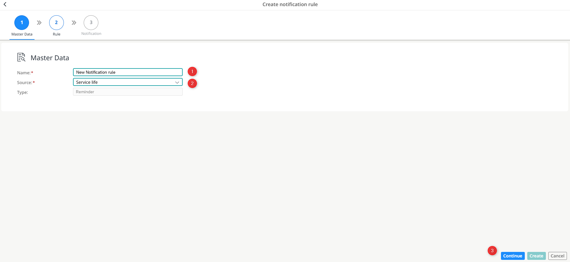 - Enter a suitable name for the notification rule and select the notification source Service life. Click Continue.