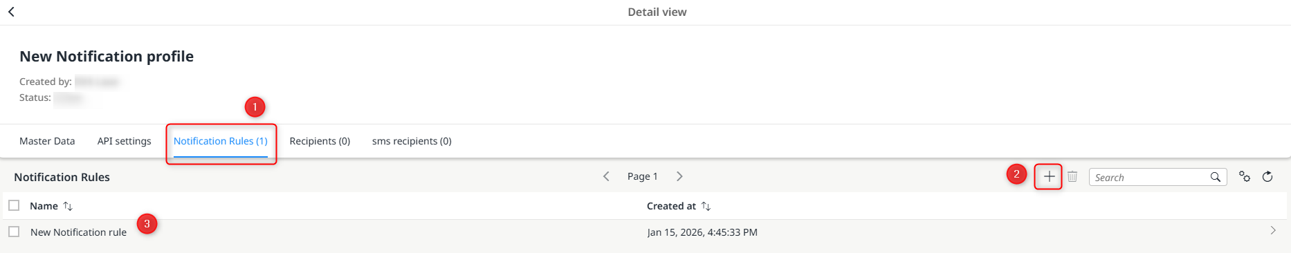 - In the detail view of the notification profile, select the Notification Rules tab.