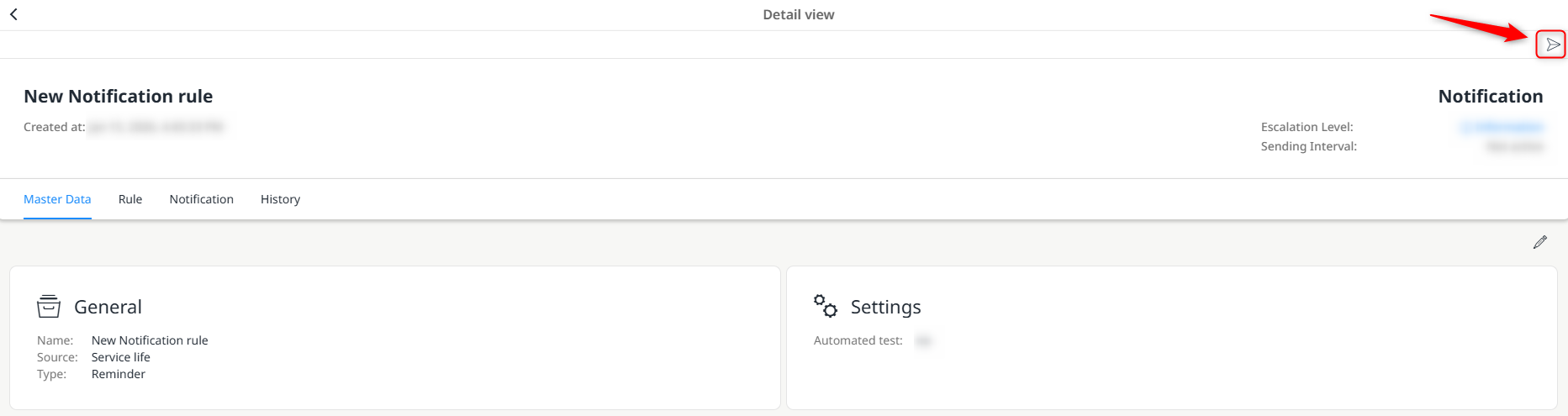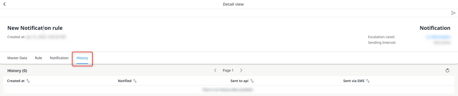 All triggered notifications can be viewed in the History within the detail view of a notification rule.