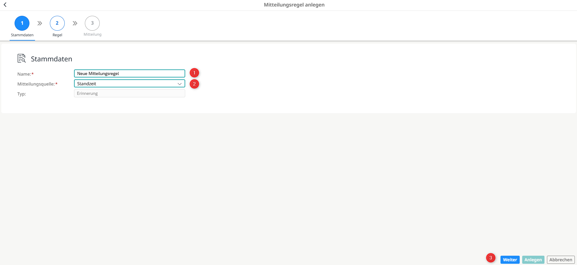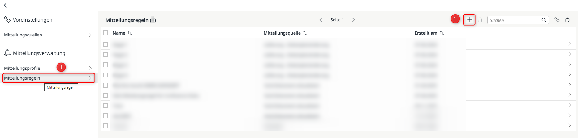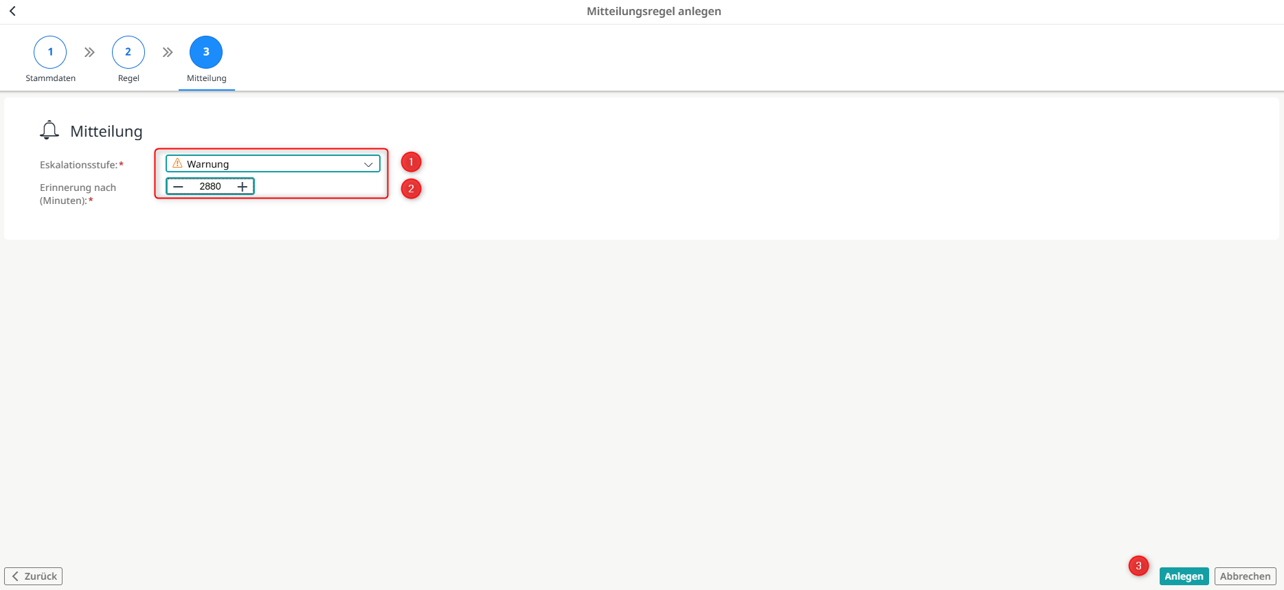 - Klicken Sie auf den Anlegen-Button, um die Mitteilungsregel anzulegen.