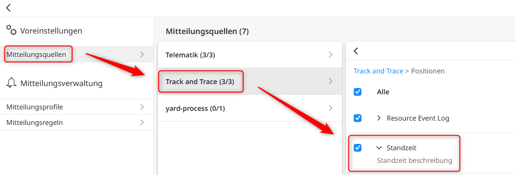 Die neue Benachrichtigungsquelle "Standzeit" finden Sie in der App Mitteilungen Einstellungen in der myleo/dsc.