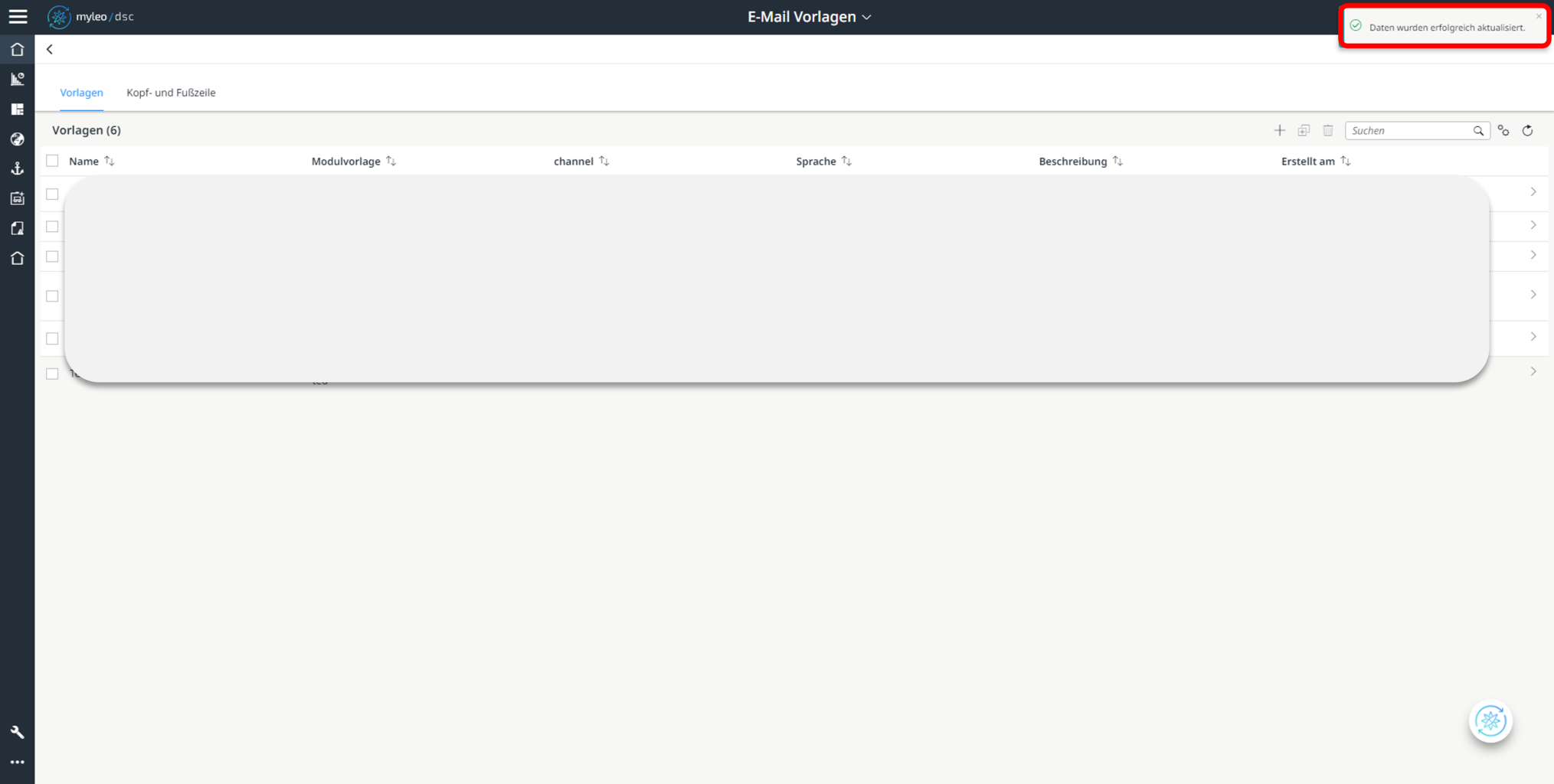 Nach dem Klick auf Speichern wird die E-Mail Vorlage erfolgreich angelegt.