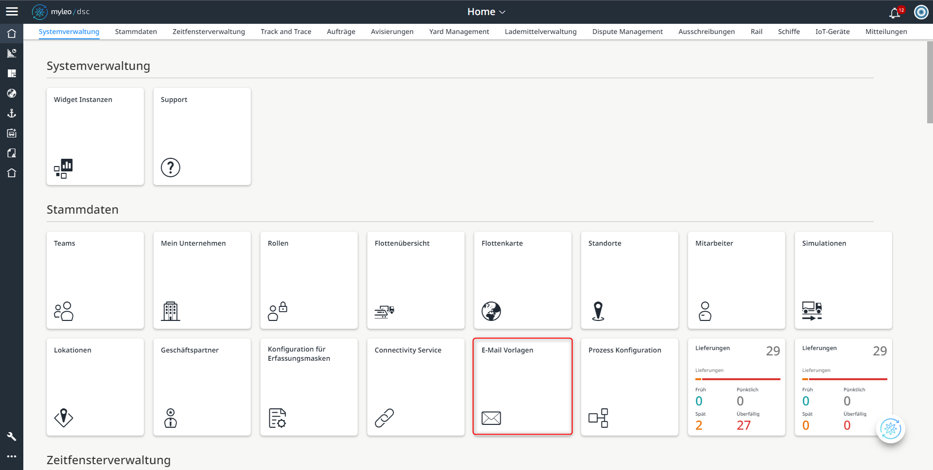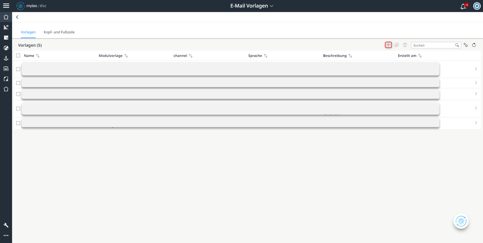 Um eine neue E-Mail Vorlage zu erstellen, klicken Sie auf das UI "E-Mail Vorlagen".