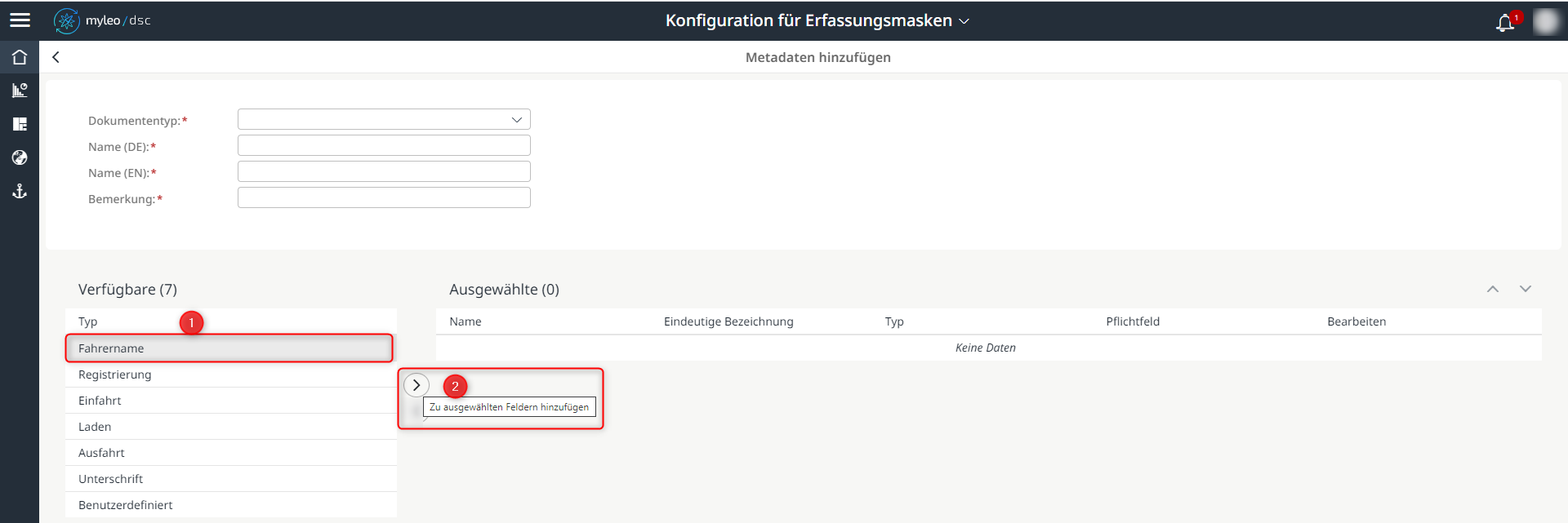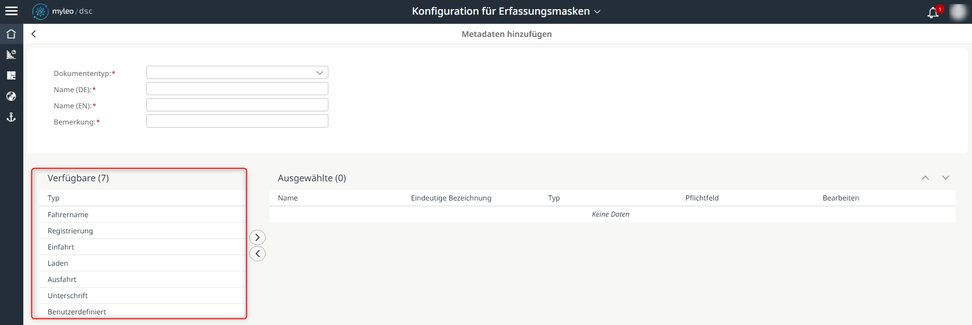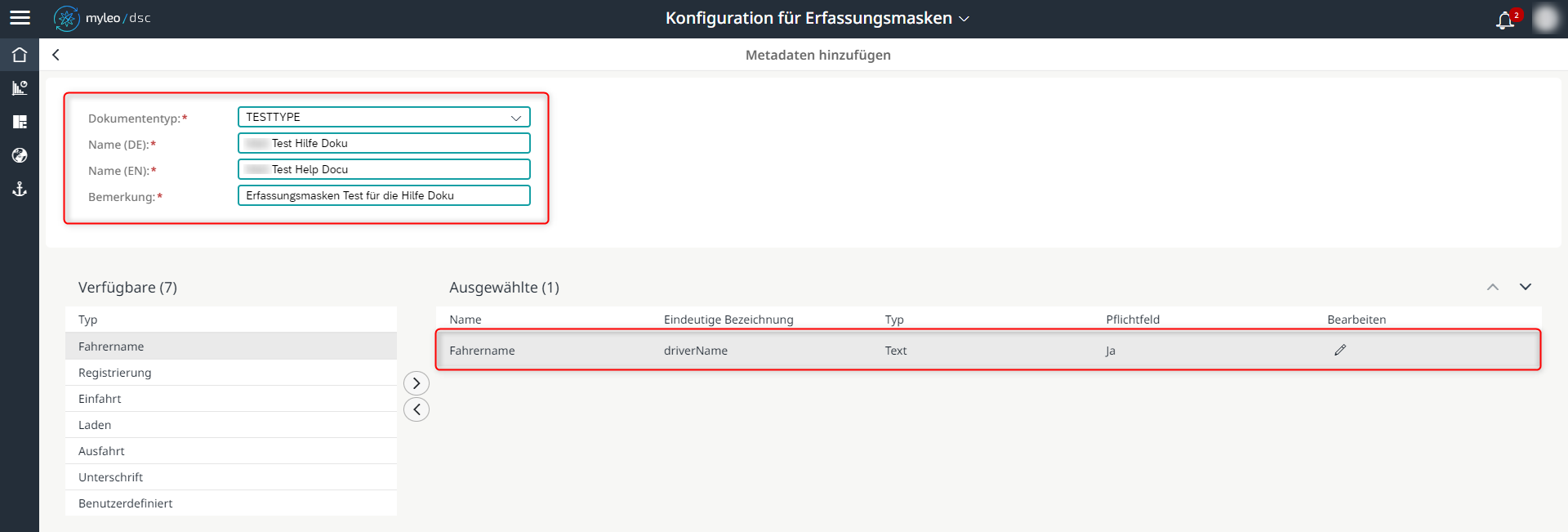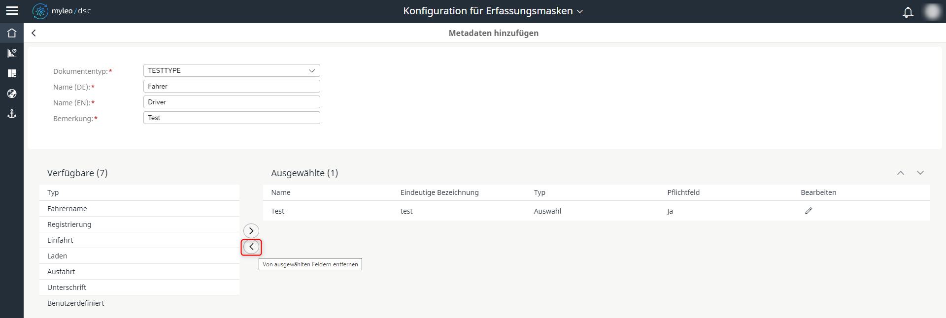 Konfiguration für Erfassungsmasken - Verfügbare und Ausgewählte Felder