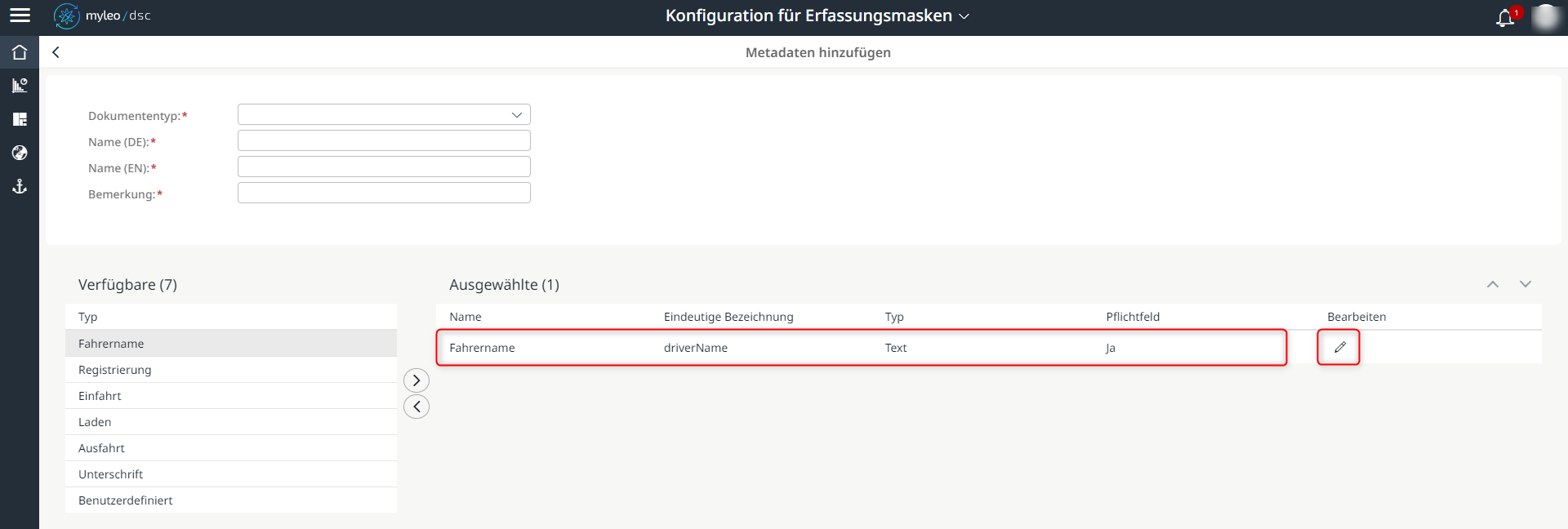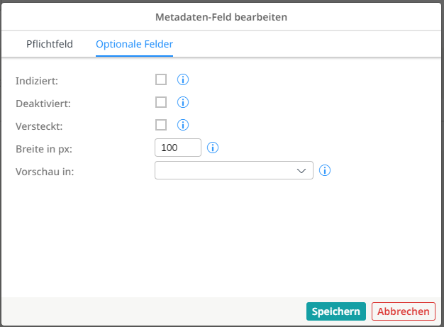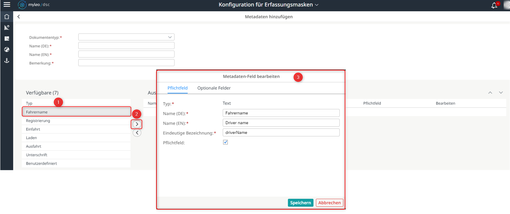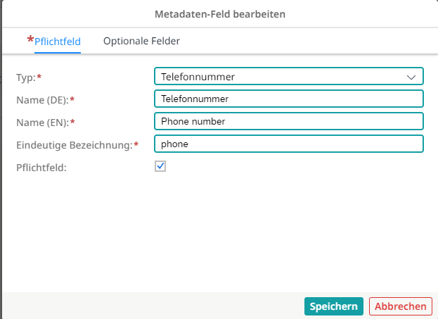 Das Arbeitsfenster Metadaten-Feld bearbeiten öffnet sich (3) und Sie müssen die folgenden Pflichtfelder ausfüllen: