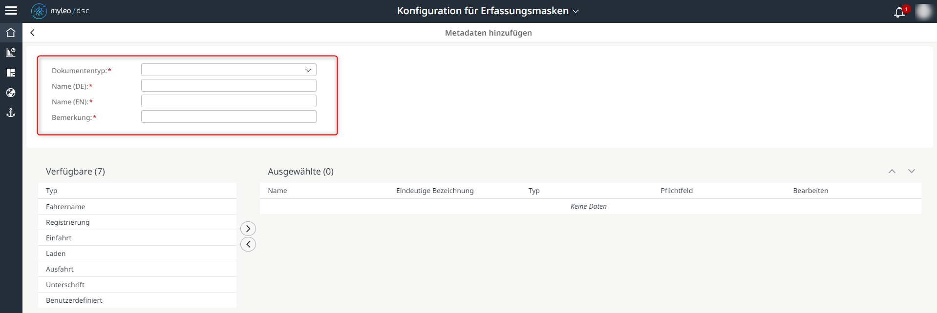 Wenn Sie den Pflichtfeldbereich komplett ausgefüllt haben, können Sie mit einem Klick auf Speichern die Metadaten anlegen.