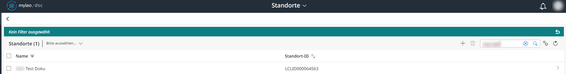 Wenn Sie alle Pflichtfelder befüllt haben, wird der Anlegen Button aktiv gesetzt. Ein Klick darauf bewirkt, dass der neue Standort gespeichert und in der Listenansicht mit einer automatisch vergebenen Standort-ID aufgelistet wird.