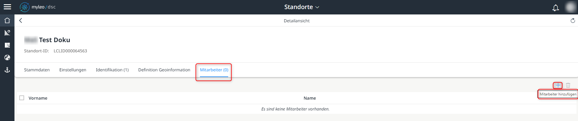 Mit dem Button können Sie neue Mitarbeiter für den Standort hinzufügen.