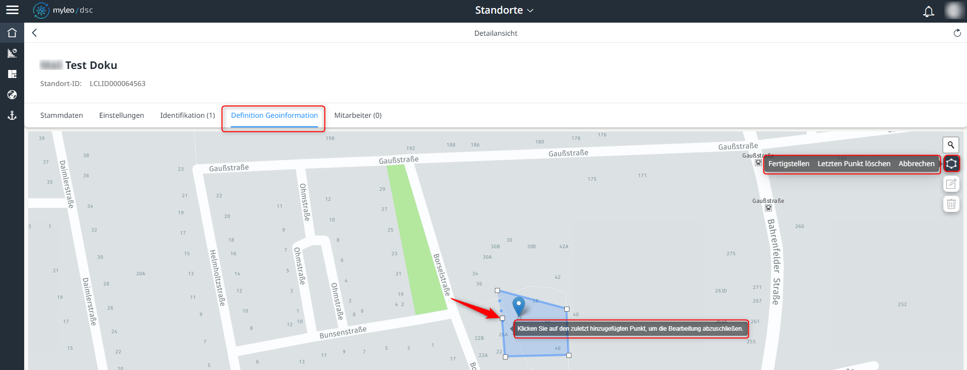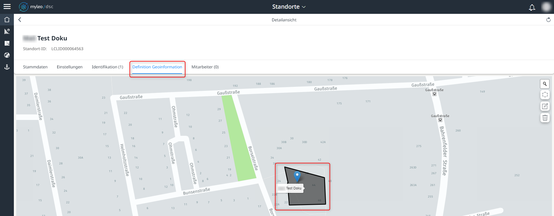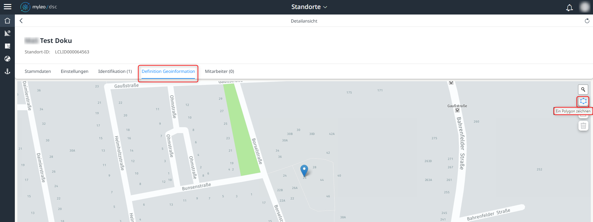 Zusätzlich besteht die Möglichkeit im Bereich Definition Geoinformation grafisch den Bereich des Standortes anzulegen.