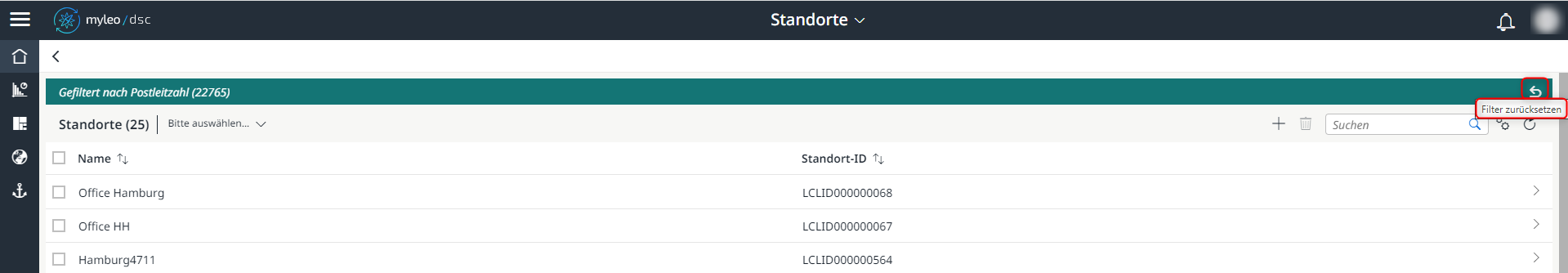 Den gesetzten Filter können Sie mit einem Klick auf den Button Filter zurücksetzen wieder entfernen: