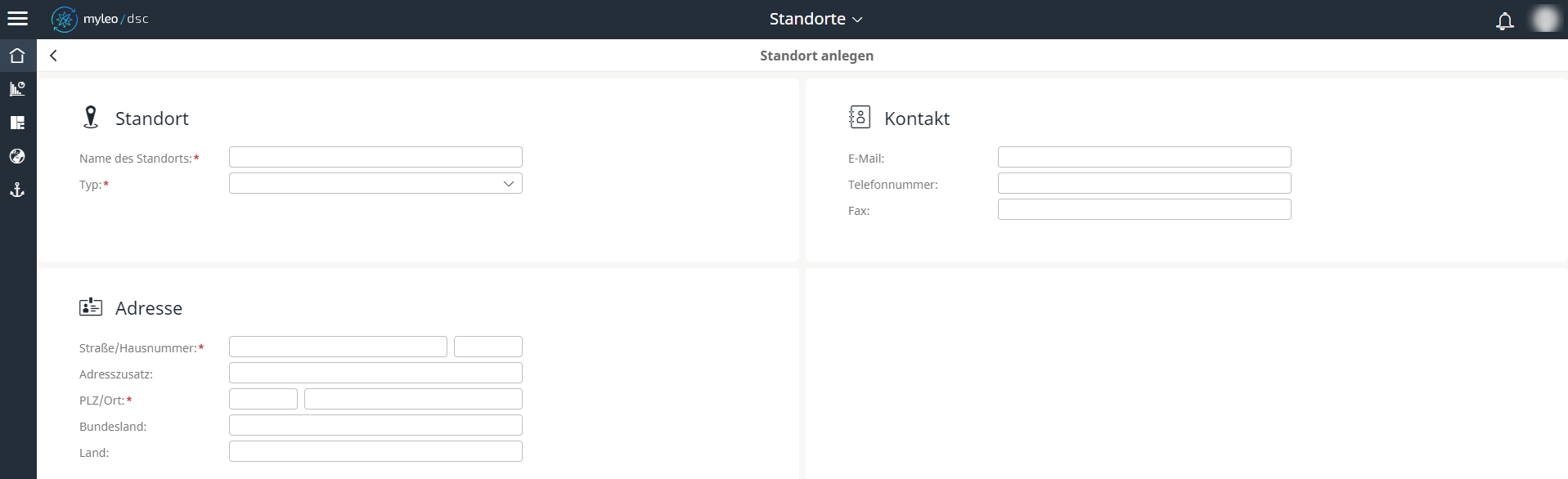 In der Ansicht Standorte anlegen können Sie den Bereich Standort, Adresse und Kontakt anlegen: