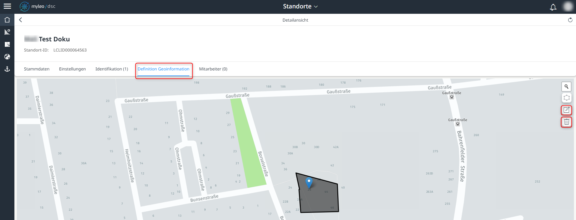 Standorte Detailansicht - Definition Geoinformation bearbeiten und löschen