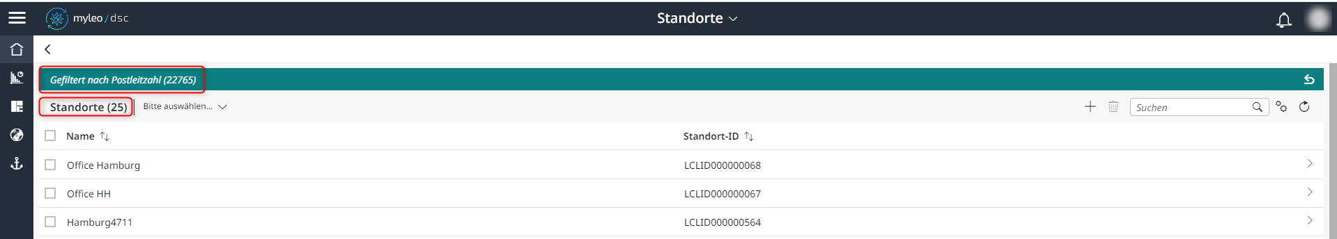 können Sie im Reiter Filter nach der PLZ filtern. In der Worklist werden dann nur die Standorte angezeigt, die dem Filter entsprechen: