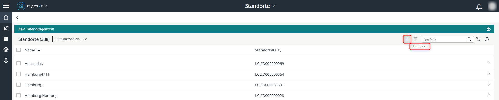 Mit dem Button können Sie neue Standorte hinzufügen.