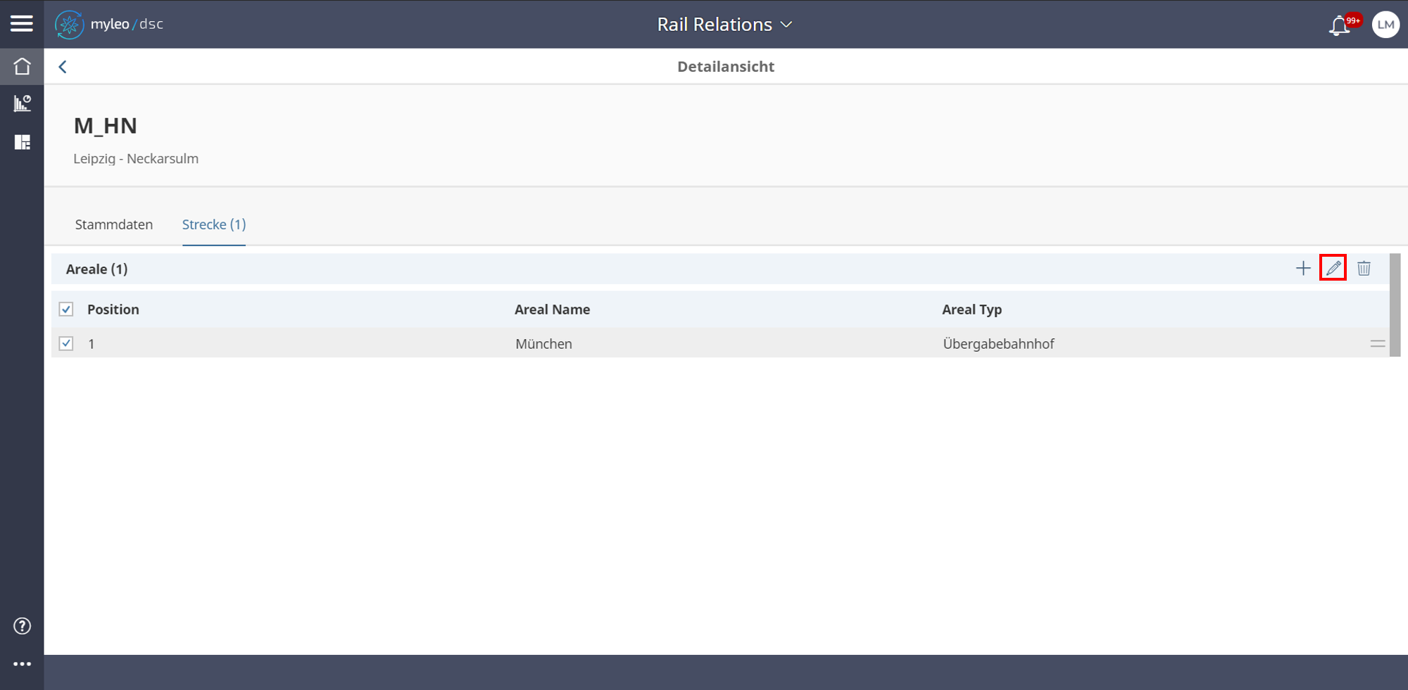 - Strecke: Sequenz von Bahn-Arealen der Kategorie Übergabebahnhof, Vorbahnhof oder Bahnstelle.