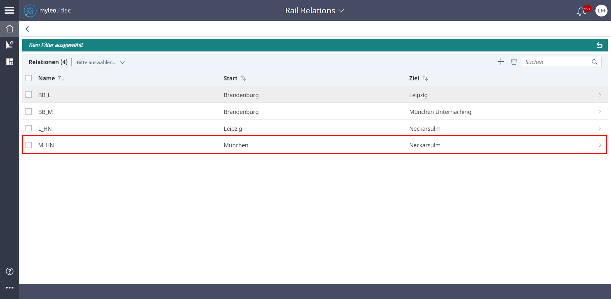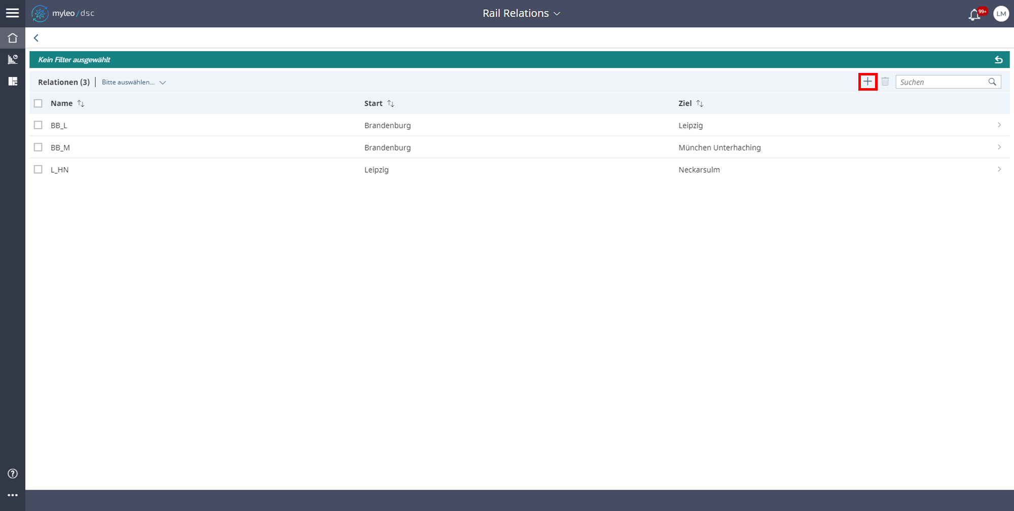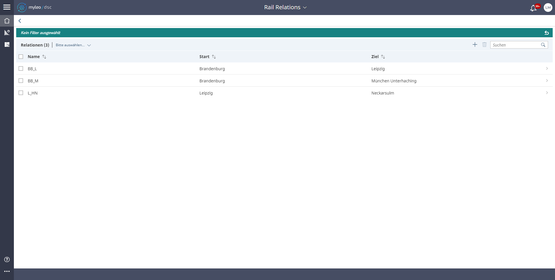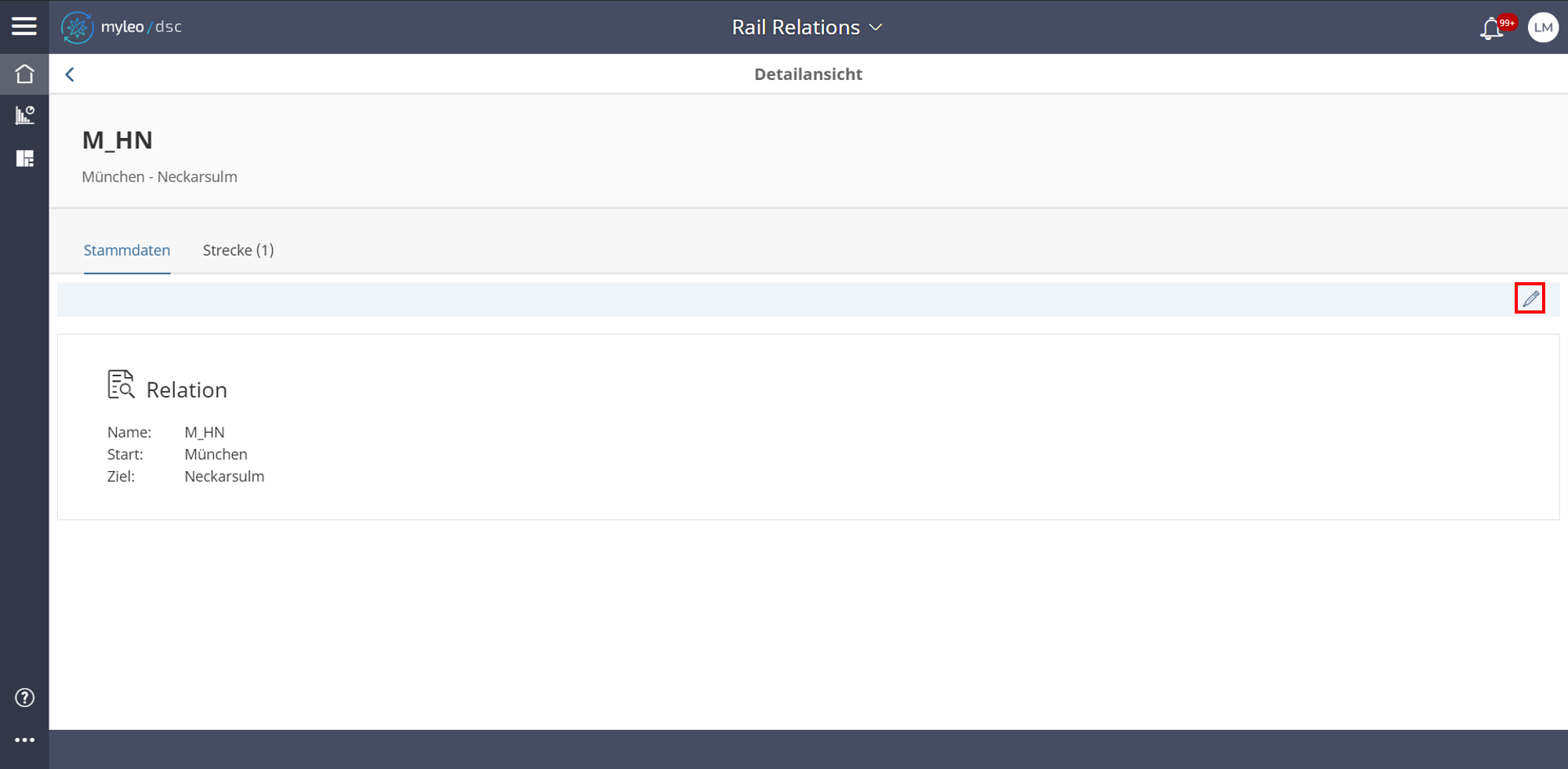 - Es werden die Stammdaten der Relation angezeigt, wie Name, Start und Ziel.