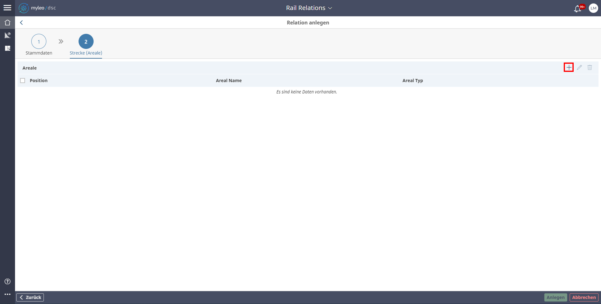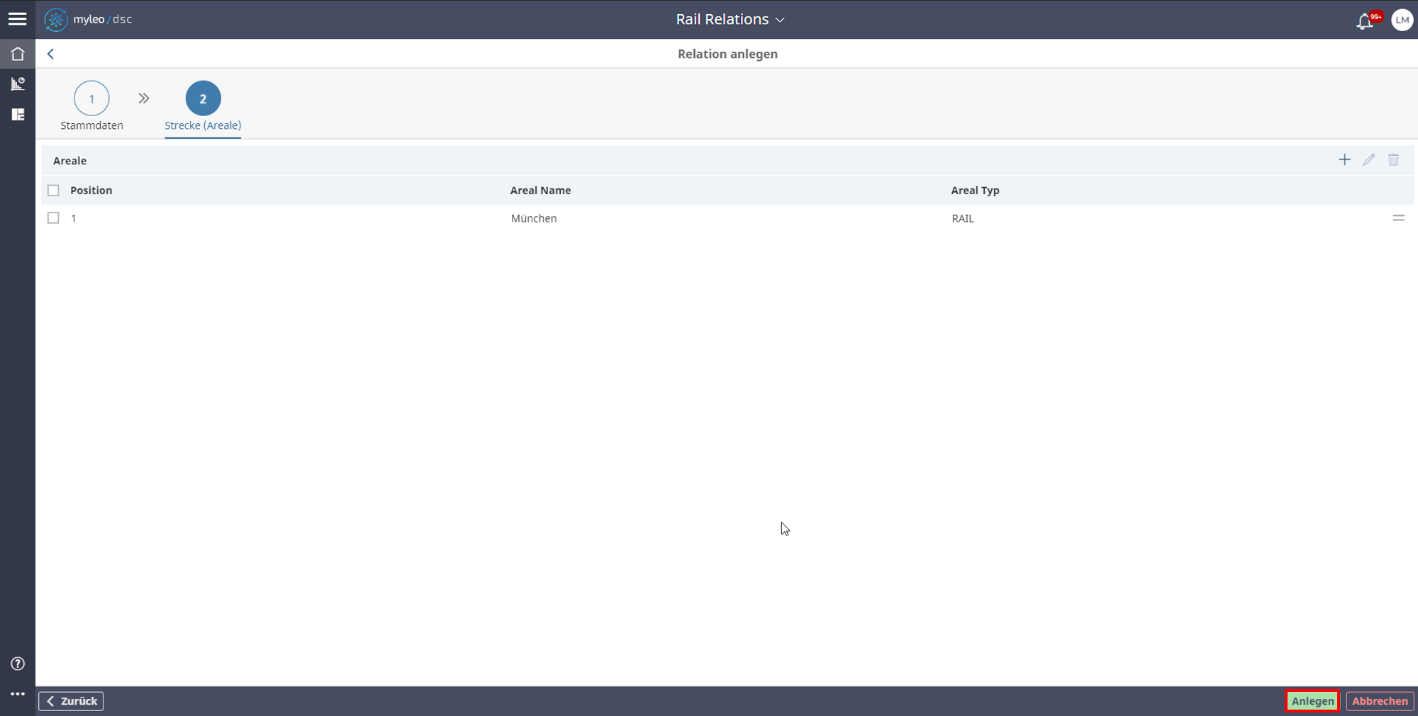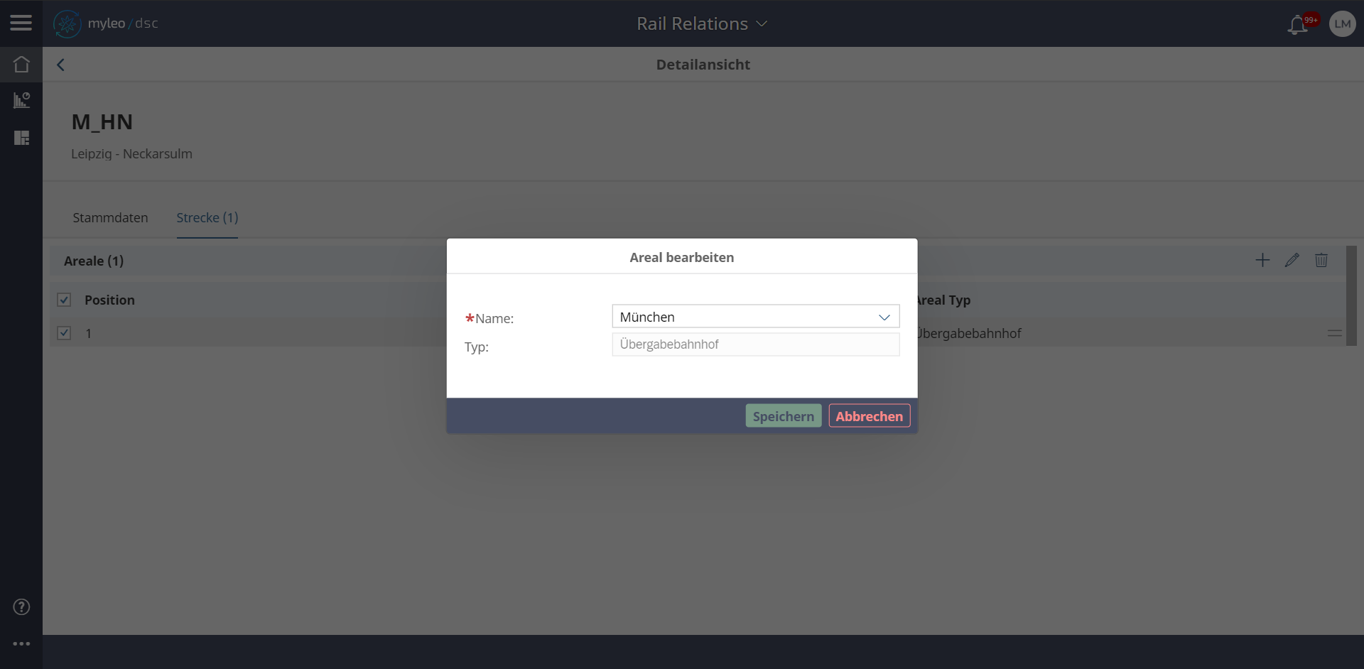 - Der Name und Typ des Bahn-Areals können verändert werden.