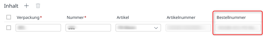 - Nach der Auswahl eines Artikels wird die zugehörige Bestellnummer nun automatisch direkt in ein neues Feld am Artikel übertragen