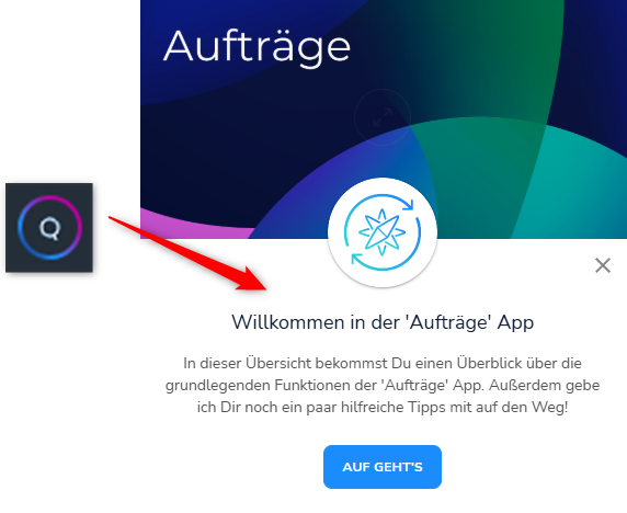 Start eines Übersichtsguides innerhalb der Aufträge App