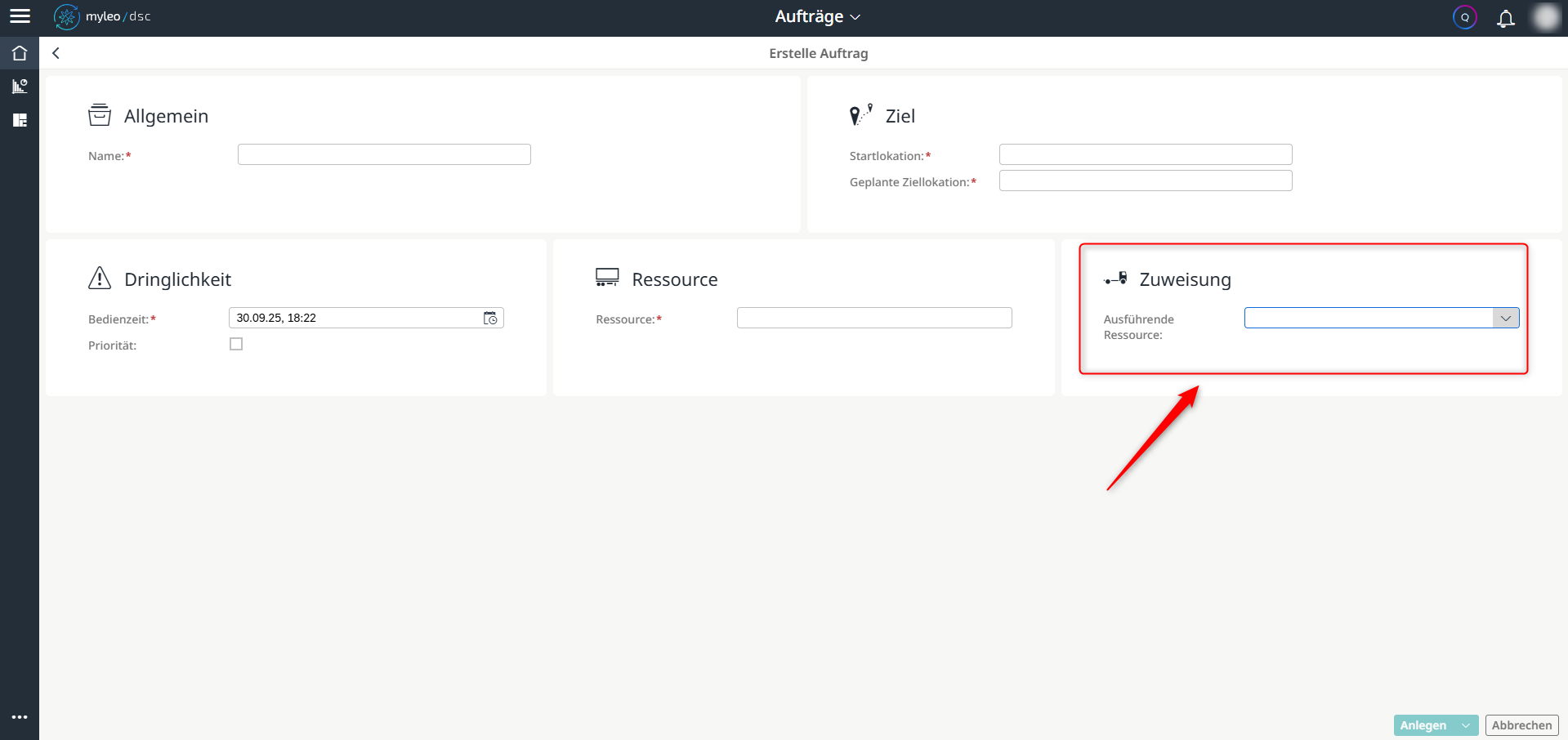Zuweisung des ausführenden Fahrzeuges bei der Erstellung eines Auftrags