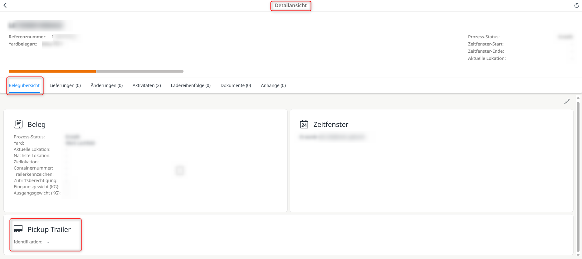 - Ein Pickup Trailer kann in mehreren Yardbelegen angegeben werden