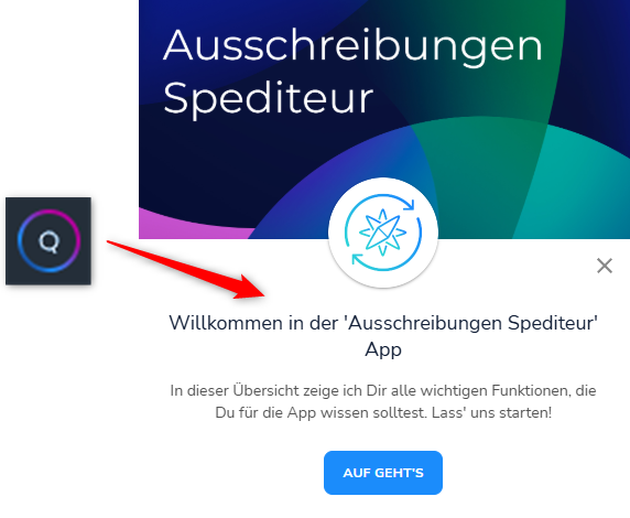 Start eines Übersichtsguides innerhalb der Ausschreibungen Spediteur App