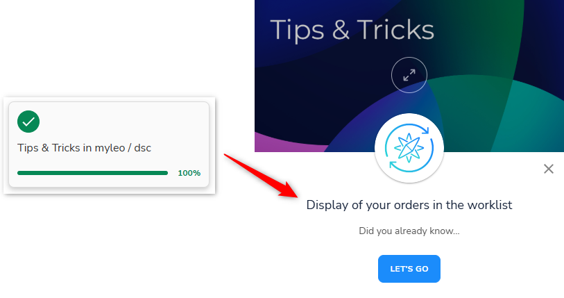 In addition, there is a new tip in the Task app regarding displaying orders within the worklist.